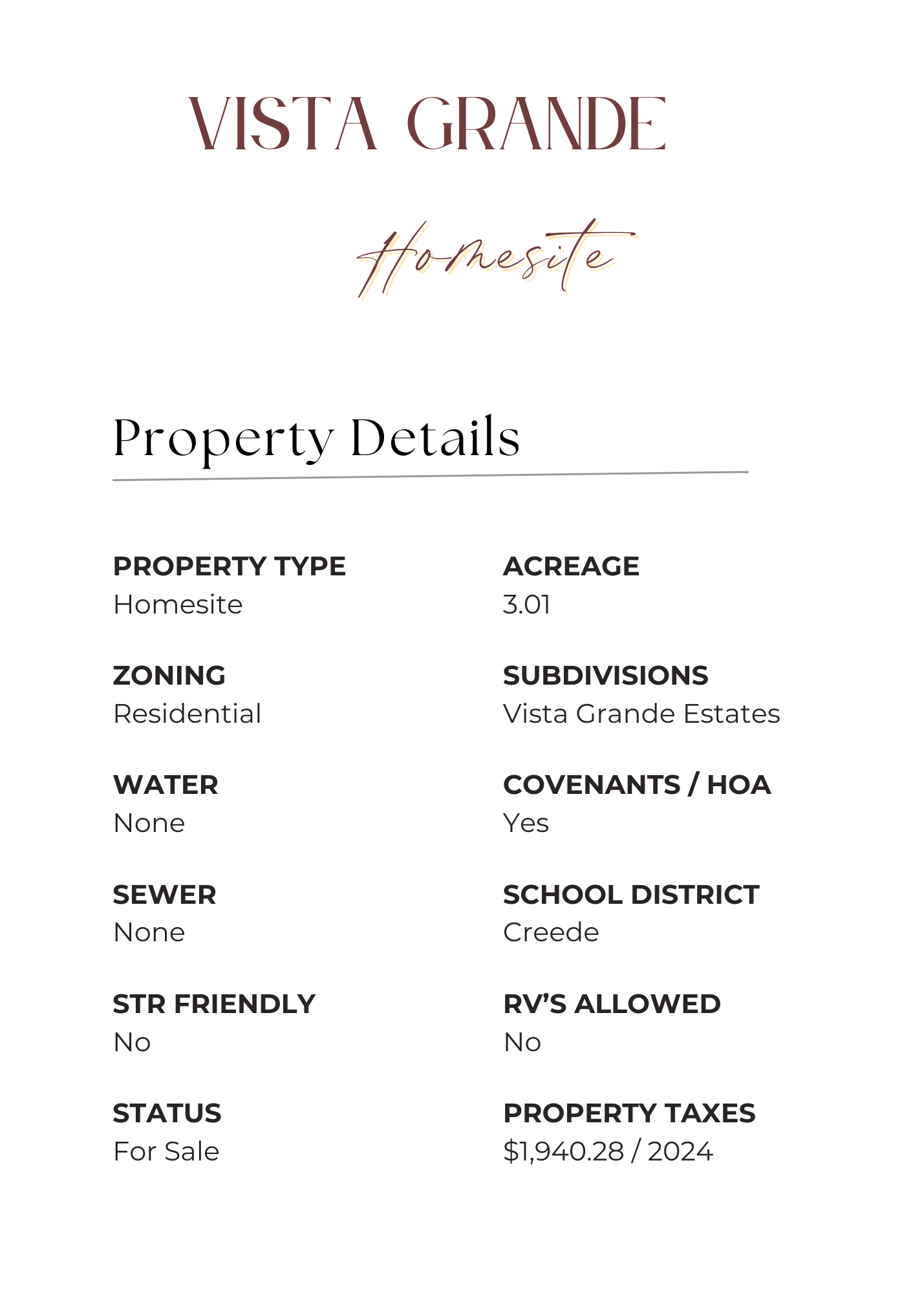 Located just outside Creede in Vista Grande Estates, this 3.01-acre homesite offers a private setting with exceptional access to the outdoors. The property includes a shared fishing easement with over half a mile of the Rio Grande River to enjoy. Conveniently located off Deep Creek Road, you’re only minutes from Creede’s historic downtown.